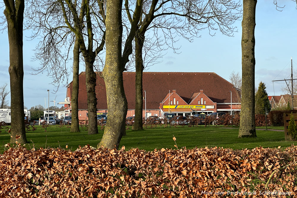 Der Briefkasten steht am Edeka (der bei uns so klein ist, dass er 'Nah und Gut' heißt), also sind wir da zuerst hingelaufen. Dann zum Sportplatz (selbst der ist bei uns besonders schön) und am Ditzum-Bunder Sieltief entlang und über die Hühnerbrücke Richtung Hafen. Als wir Zuhause waren, haben wir festgestellt, dass wir zwar am Edeka waren, aber den Brief nicht eingeworfen haben - manchmal sind wir wirklich ein bisschen verpeilt. Der Brief muss jetzt bis ins neue Jahr warten.