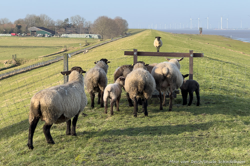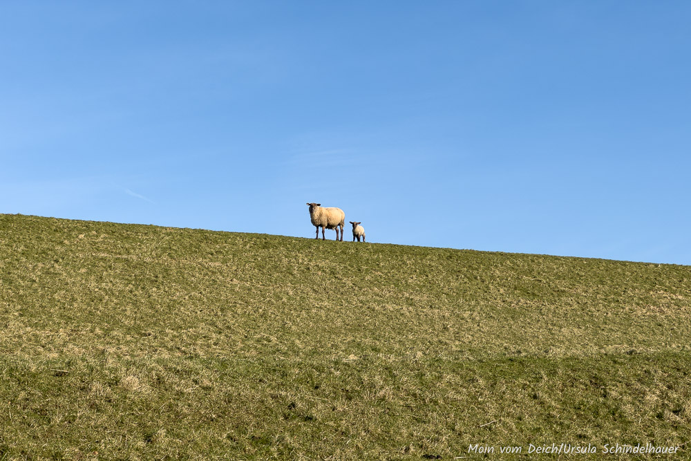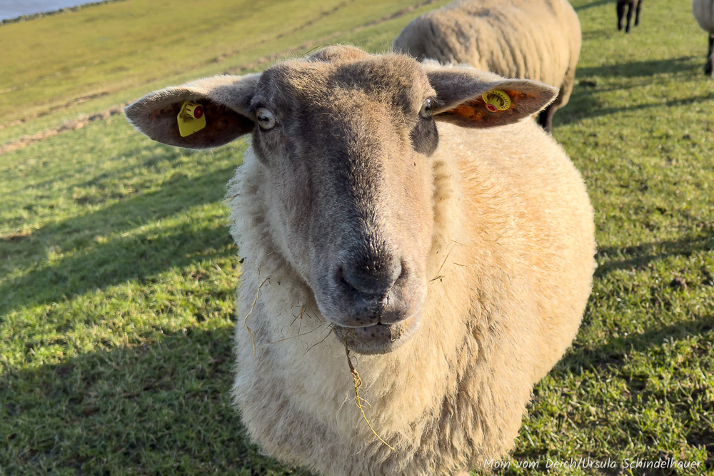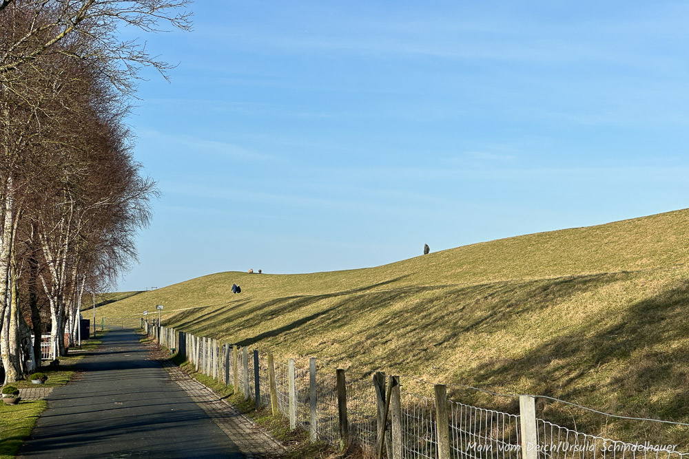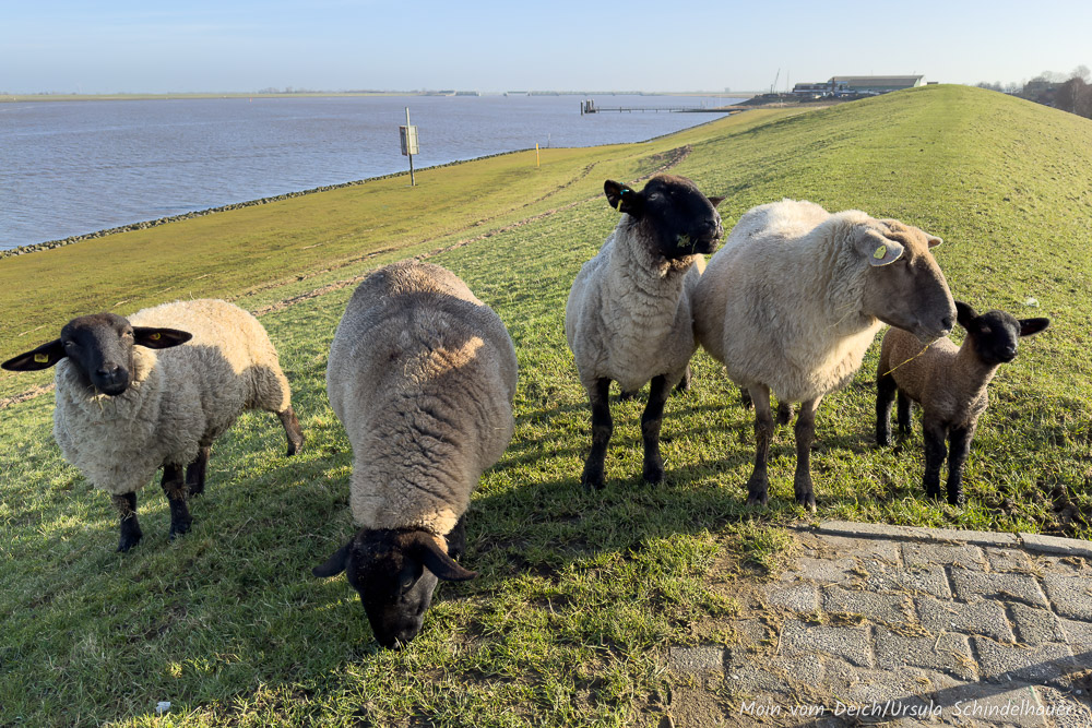 Eigentlich wollten wir heute nur kurz zum Edeka, noch was einkaufen, das wir vorgestern vergessen hatten. Zum Glück kann man den Weg dorthin wunderbar mit einer kleinen Runde verbinden und zum noch größeren Glück schien die Sonne und 'unsere' Schafe waren am Deich. So passiert es dann, dass man für ein kurzes Stück Weg eine gute Stunde braucht.