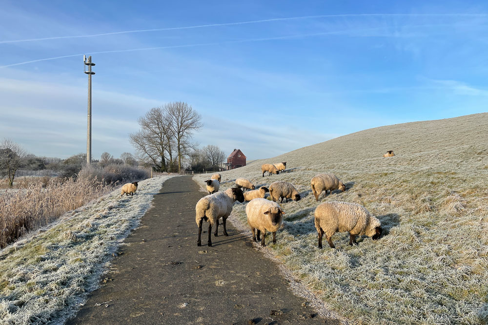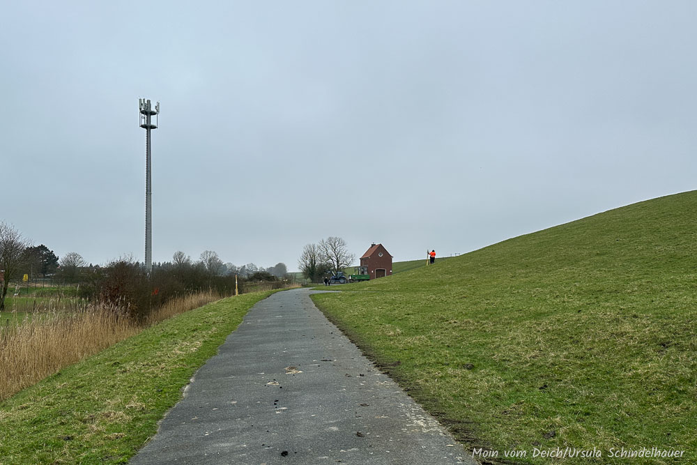 Heute morgen wollten wir eine schöne Runde laufen und sind dazu hinterm Haus links abgebogen Richtung Ditzumer Schöpfwerk. Ich liebe den Weg zum Schöpfwerk, vor allem wegen der zwei großen Bäume, die beim Schöpfwerk auf einer Weide stehen. Das Sieltief ist wunderbar eingewachsen und viele Tiere sind jedes Jahr in seinem Unterholz zuhause. Der Weg am Sieltief entlang aus Richtung Pogumer Straße ist vor allem im hinteren Teil kurz vor dem Deich schon fast märchenhaft.
