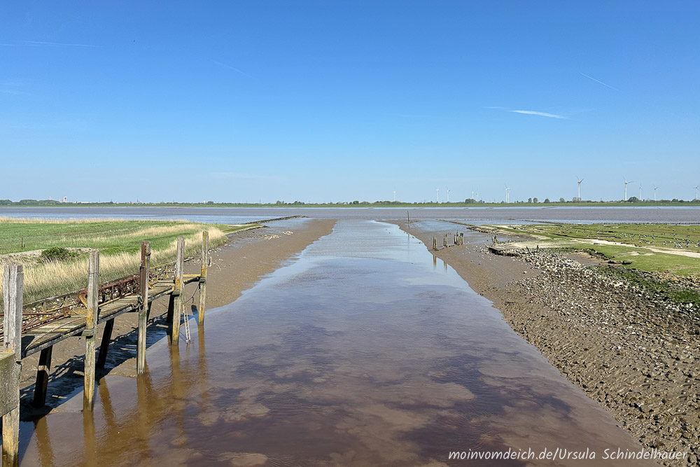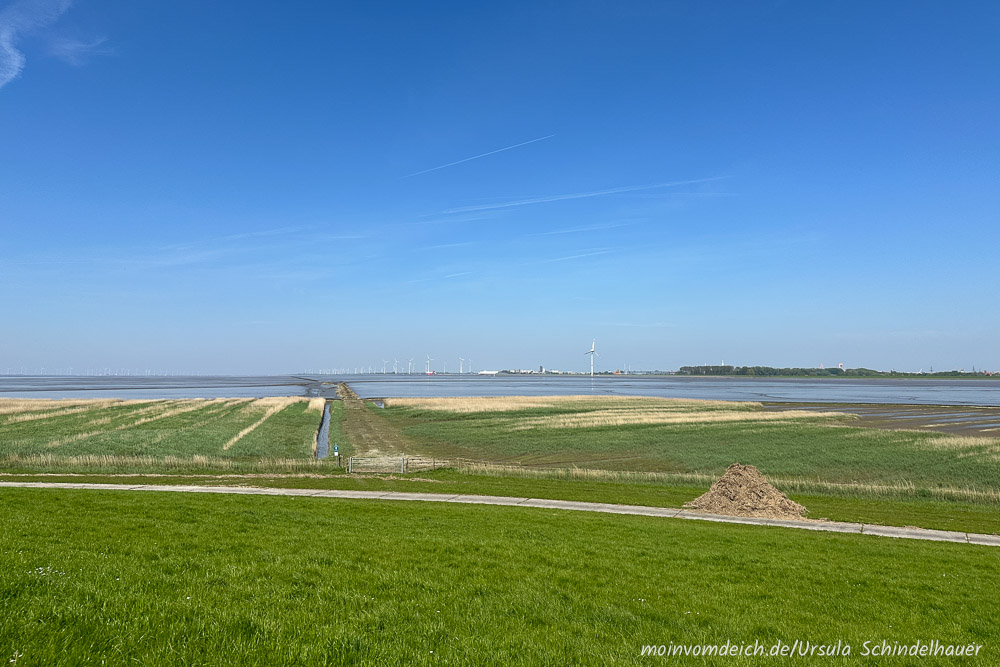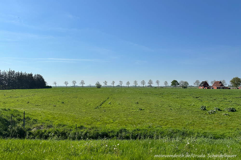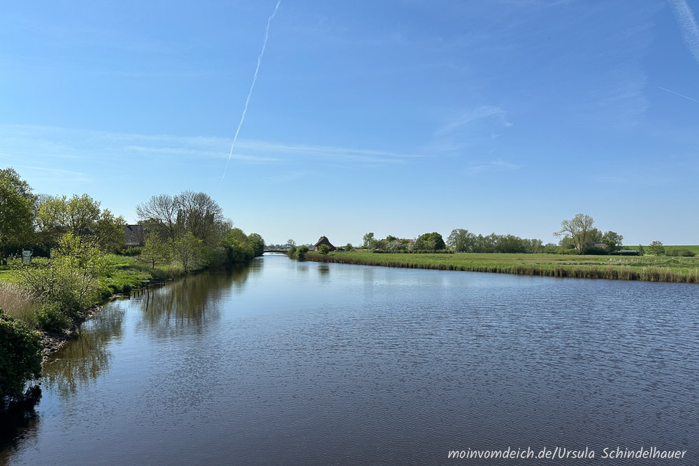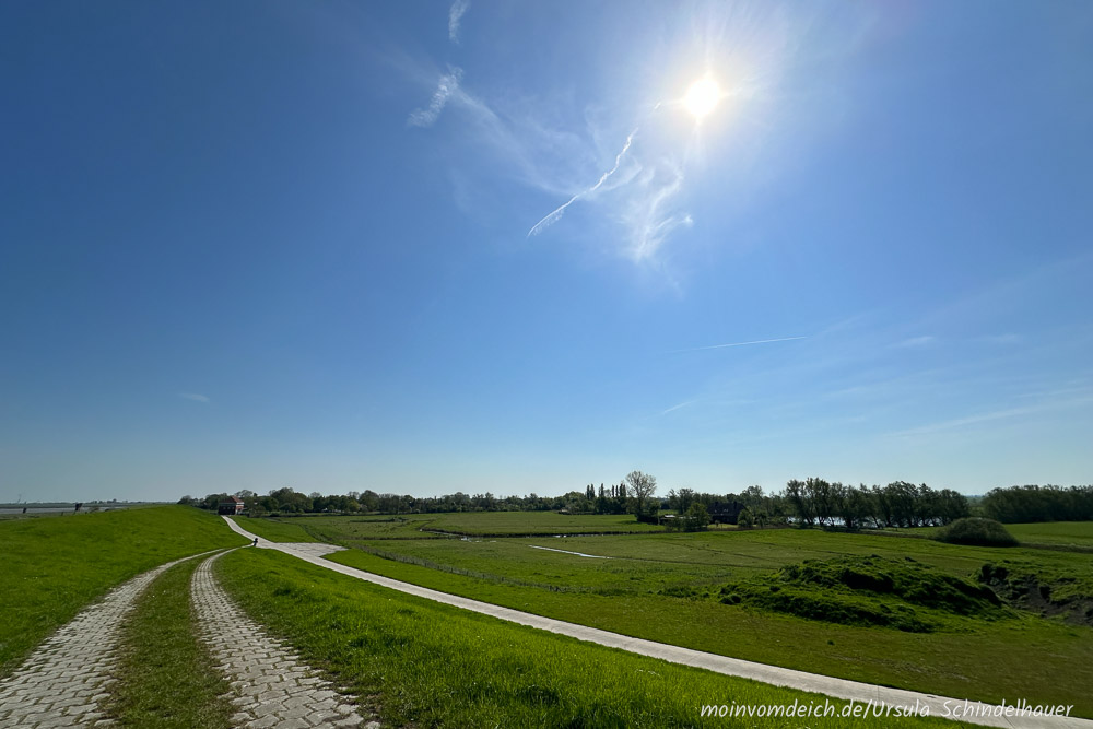 Eigentlich wollten wir heute morgen nämlich nach Jemgum fahren, weil wir da was erledigen wollten. Aber wenn schon beim Aufwachen die Sonne lacht und man die Vögel draußen hört, ist einem völlig klar, dass das, was man erledigen wollte, gar nicht wirklich wichtig ist und man viel besser das herrliche Wetter genießen sollte. Also haben wir uns unsere Kackschuhe angezogen, das Auto stehen lassen und sind losgezogen. Hinterm Deich zum Pogumer Schöpfwerk und am Wasser zurück - einfach herrlich.
