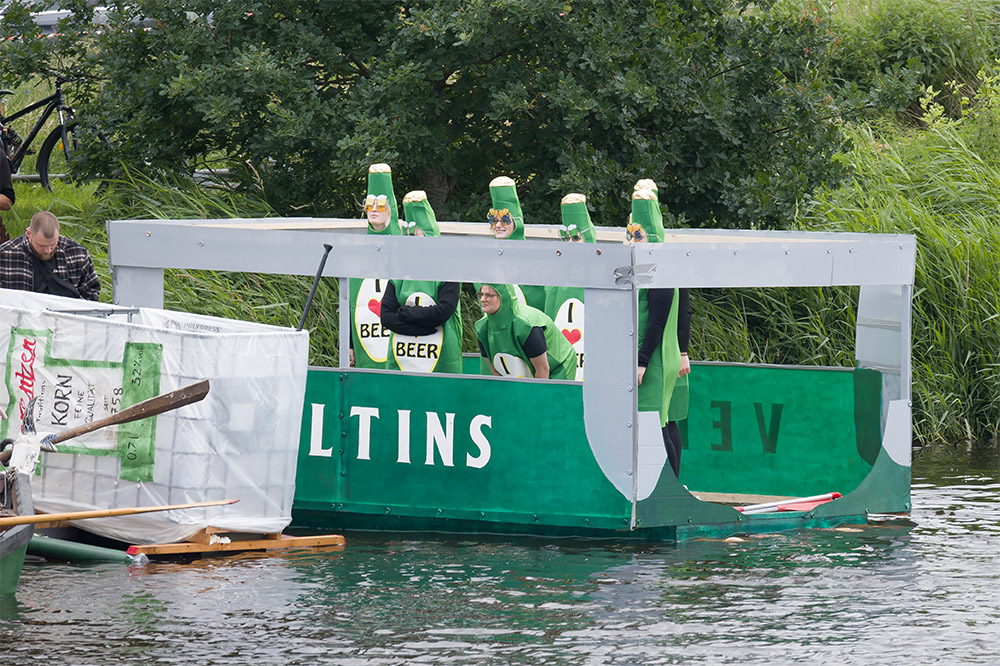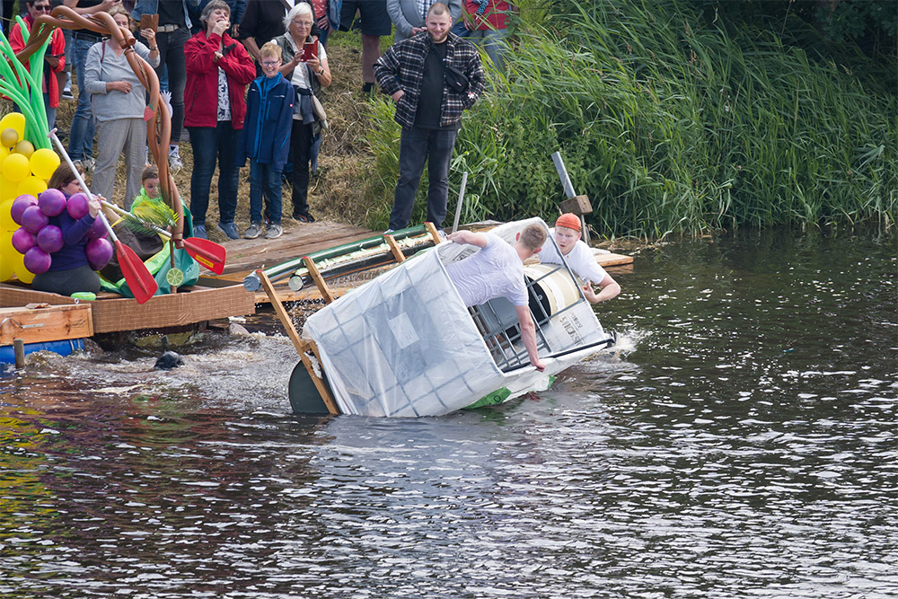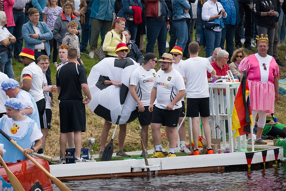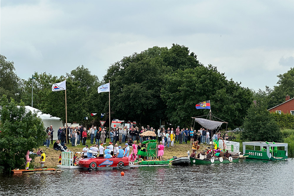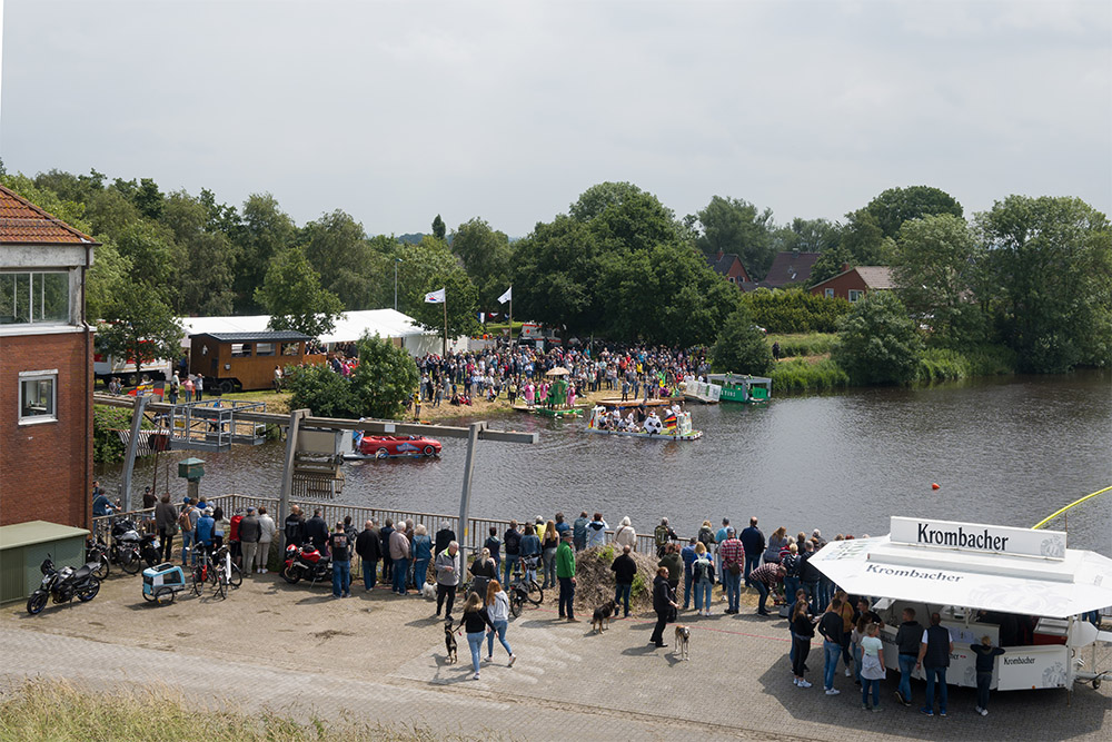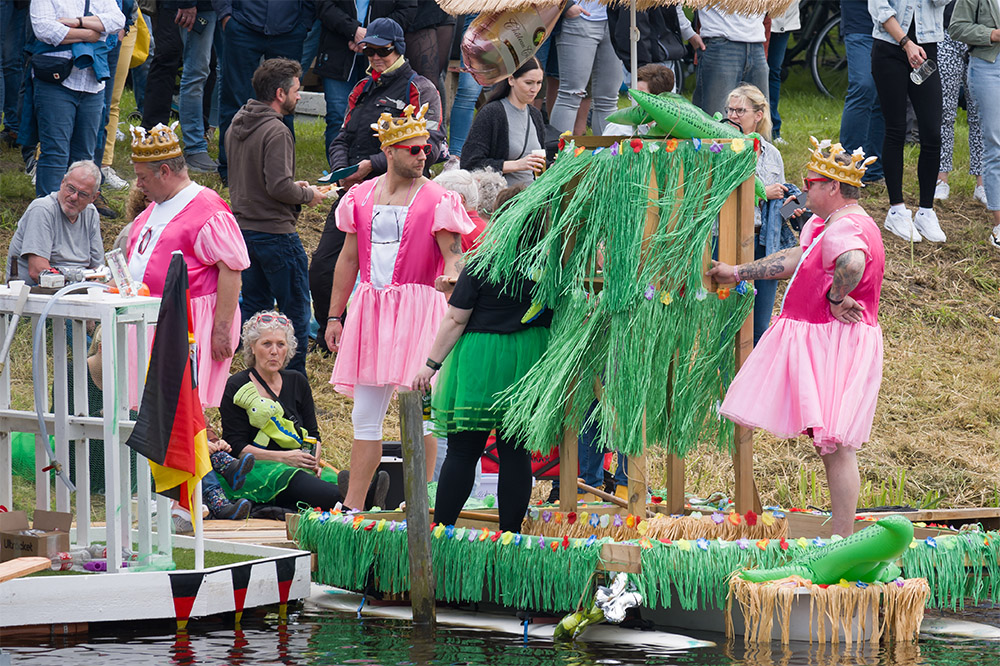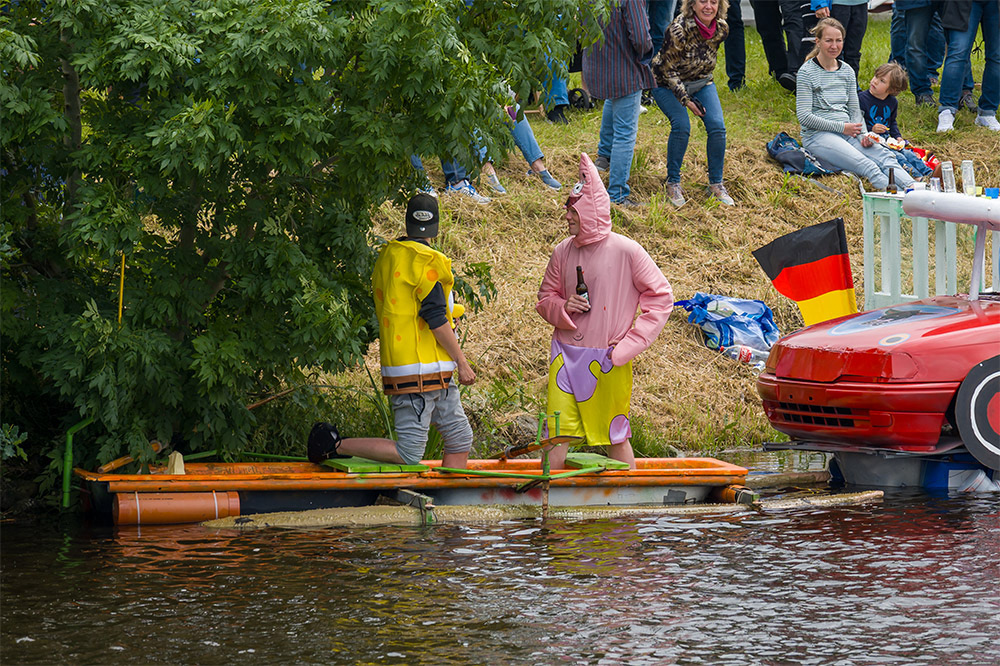 Heute war Badewannenrennen in Pogum. Das ist eine irrwitzige Veranstaltung, bei der verschiedene Teams tatsächlich in Badewannen (das ist Grundvoraussetzung) gegeneinander auf dem Wymeerer Sieltief nur mit Muskelkraft Rennen fahren. Allerdings werden die Badewannen so umgebaut, dass die tollsten Boote daraus werden - der Phantasie sind keine Grenzen gesetzt. Zu gewinnen gibt es verschiedene Pokale: Für die schnellste Badewanne, die schönste Badewanne und den spektakulärsten Untergang zum Beispiel.