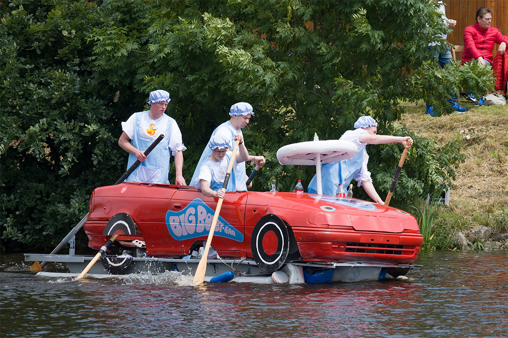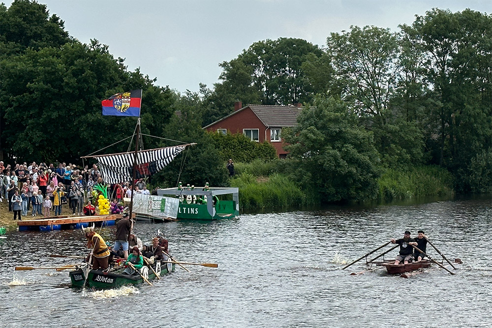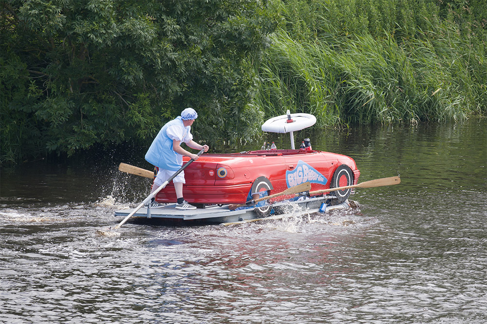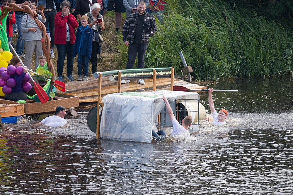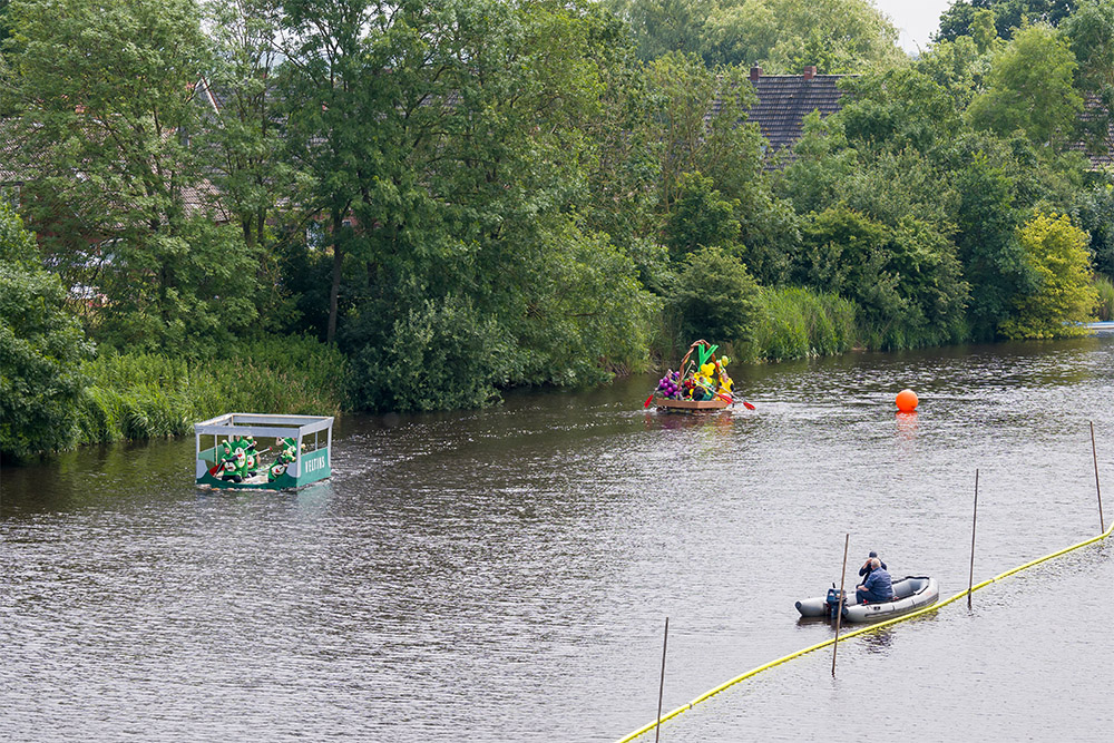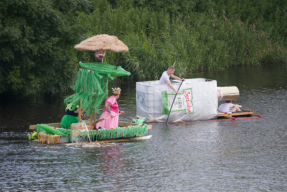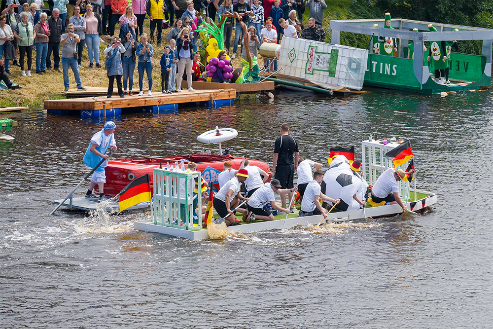Heute war Badewannenrennen in Pogum. Das ist eine irrwitzige Veranstaltung, bei der verschiedene Teams tatsächlich in Badewannen (das ist Grundvoraussetzung) gegeneinander auf dem Wymeerer Sieltief nur mit Muskelkraft Rennen fahren. Allerdings werden die Badewannen so umgebaut, dass die tollsten Boote daraus werden - der Phantasie sind keine Grenzen gesetzt. Zu gewinnen gibt es verschiedene Pokale: Für die schnellste Badewanne, die schönste Badewanne und den spektakulärsten Untergang zum Beispiel.
