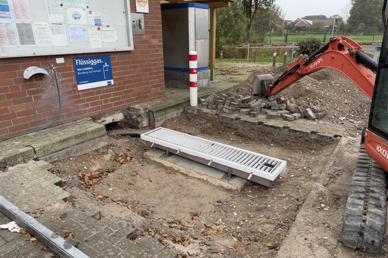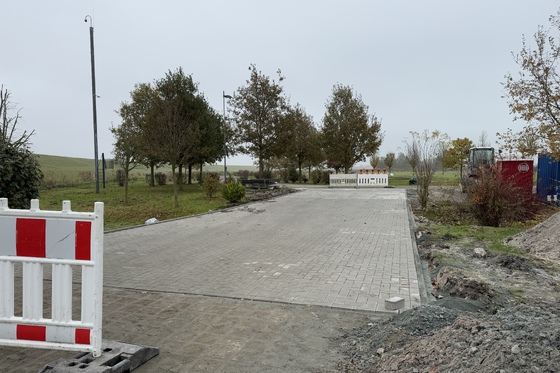 Die neue Straße ist fertig und der neue Grauwassereinlass auch; hier muss allerdings wetterbedingt der Beton noch ein bisschen länger aushärten, so dass der Grauwassereinlass nicht direkt zur Verfügung stehen wird. Grauwasserentsorgung wird also in den ersten Tagen nach der Öffnung auf dem Platz noch nicht möglich sein.