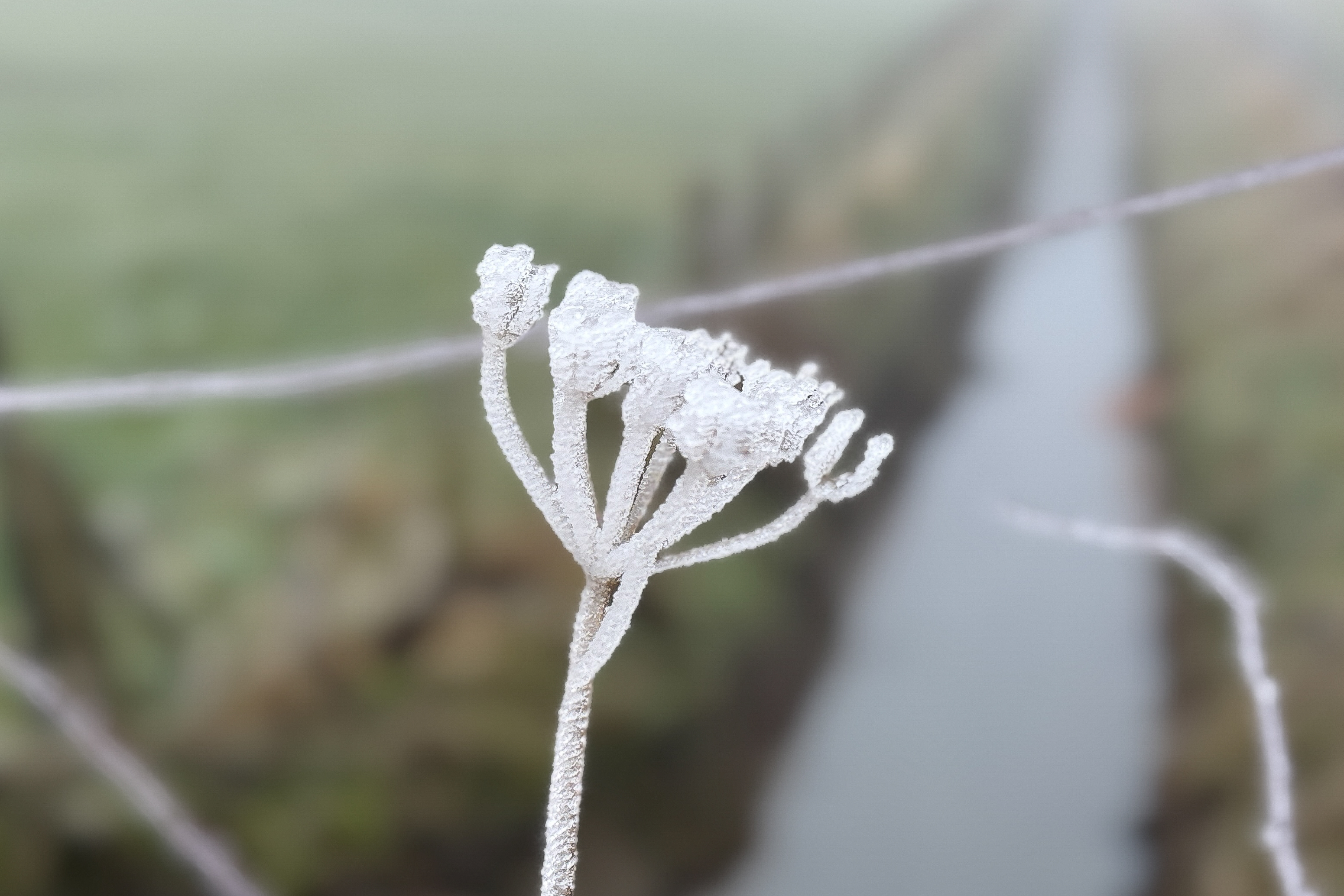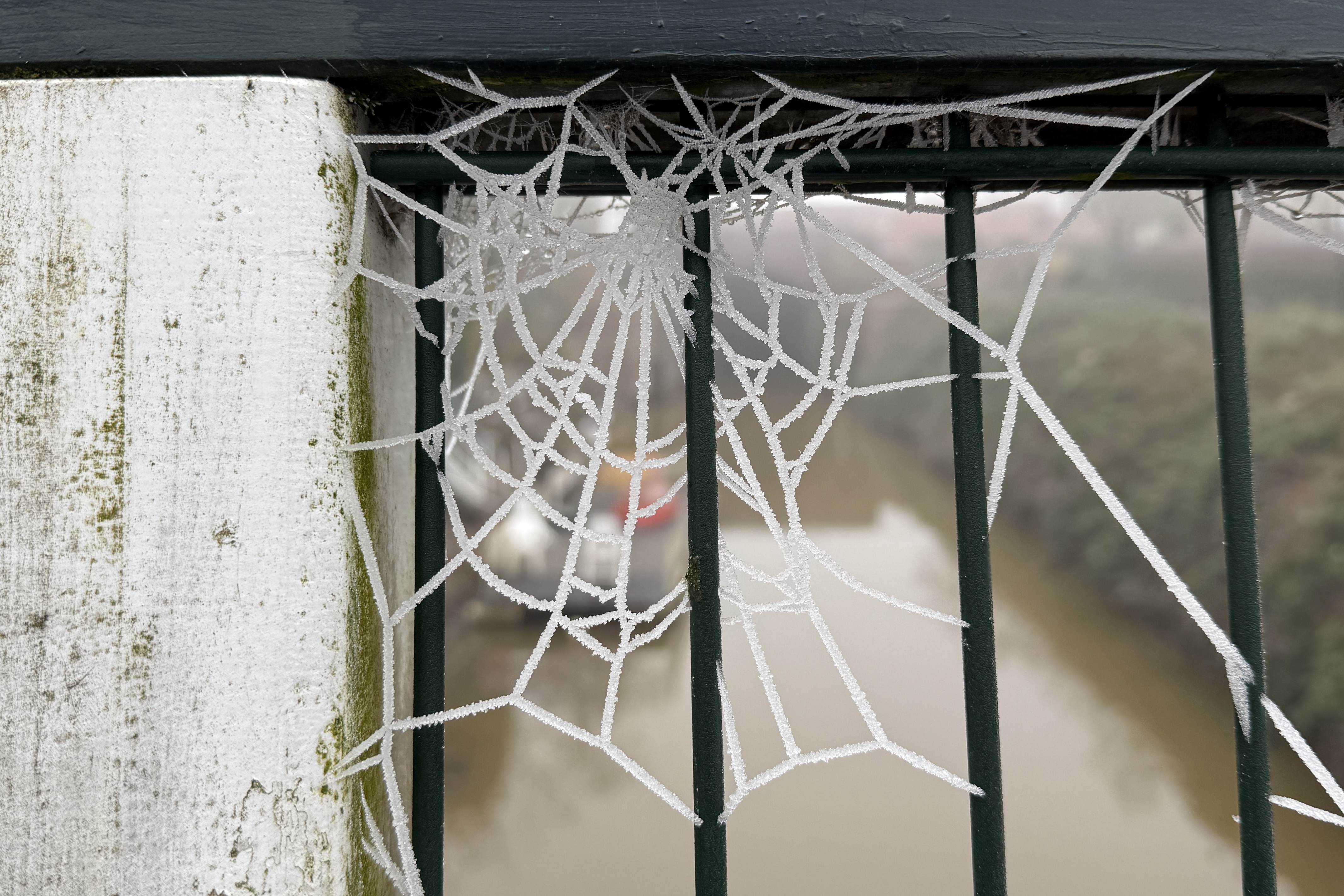 Gefrorenes Spinnennetz an der Hühnerbrücke