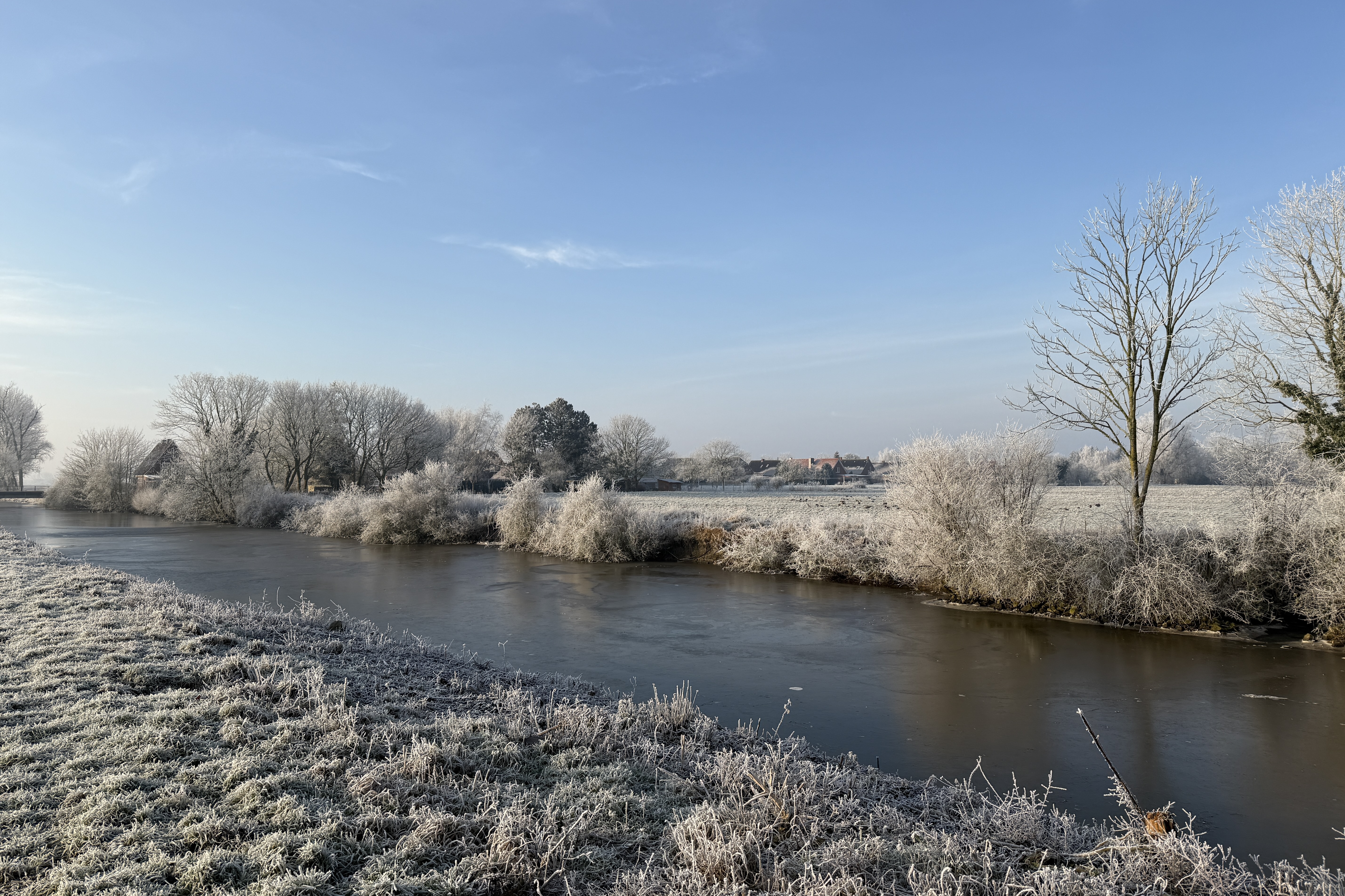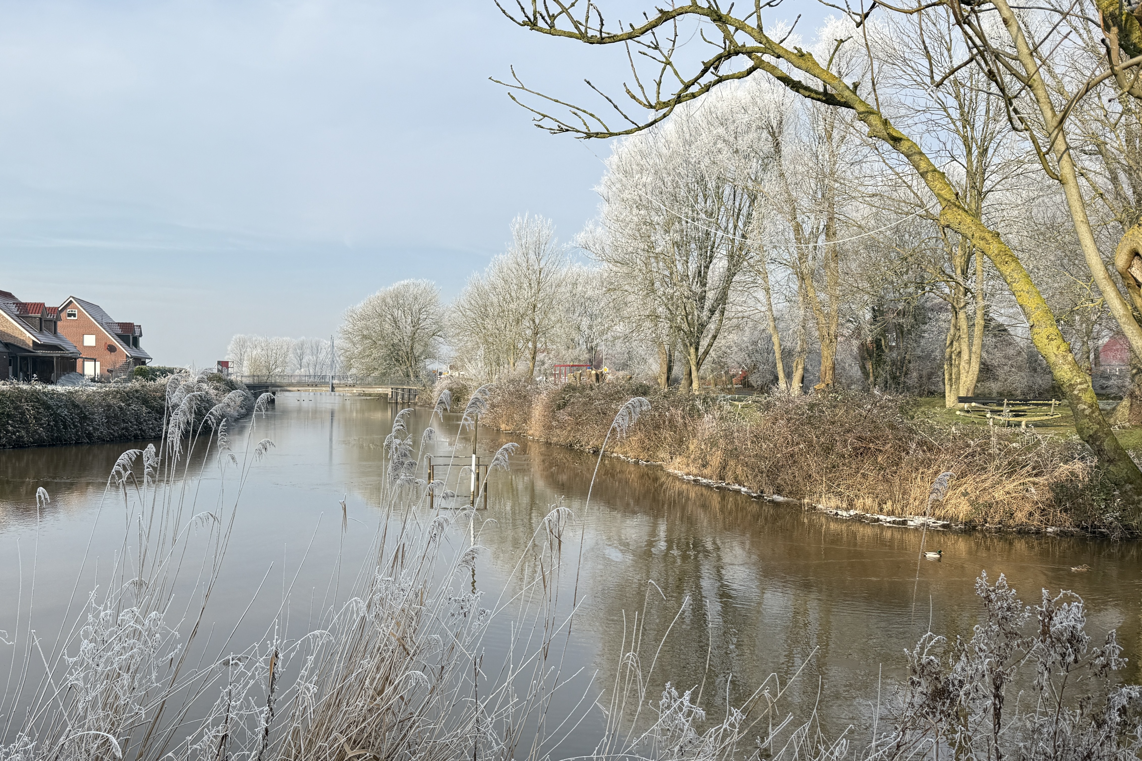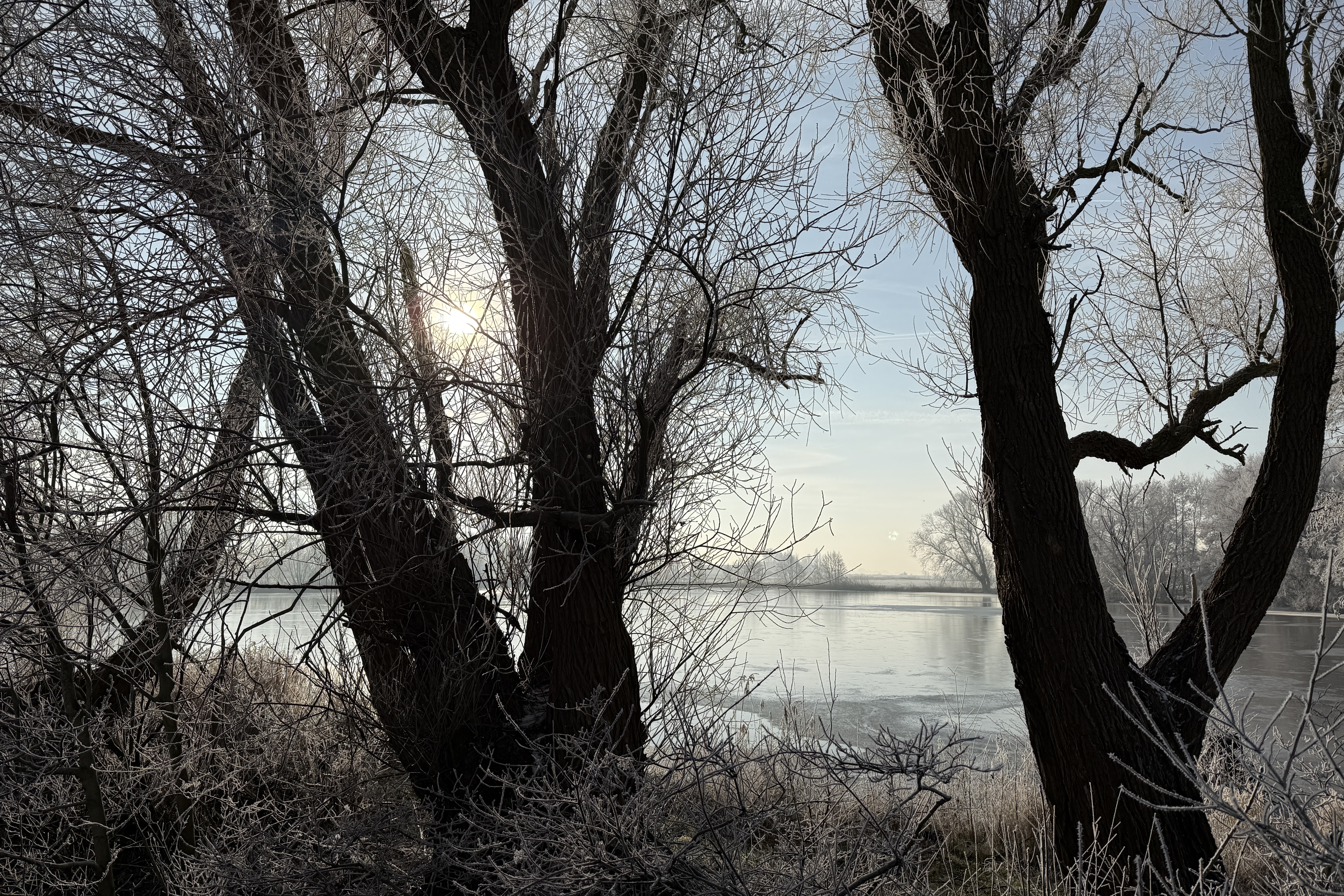 Eigentlich wollten wir heute verschiedene Dinge erledigen; etwas Papierkrams und ein paar andere Kleinigkeiten. Aber wer mag schon Papierkrams und andere Kleinigkeiten, wenn es knackig kalt ist, die Sonne lacht und alles wunderbar überfroren ist? Da muss man einfach raus und den wunderschönen Wintertag bestaunen. Und genau das haben wir gemacht.
